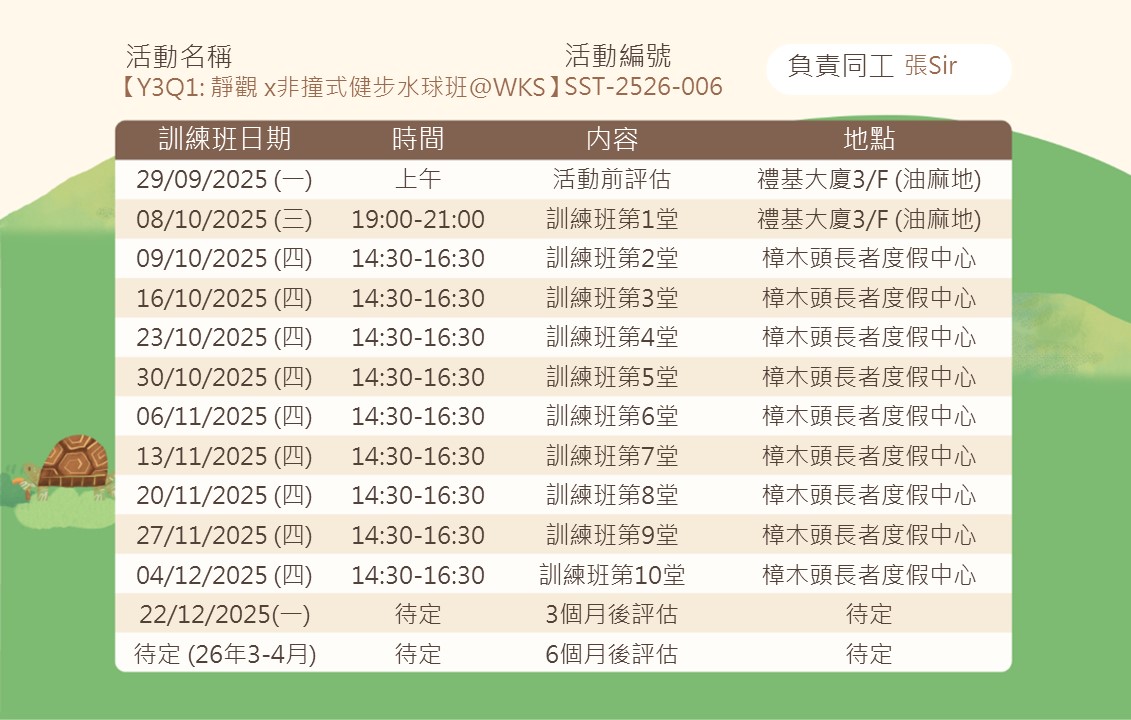 3) 參加者需要自行前往場地(樟木頭長者度假中心);